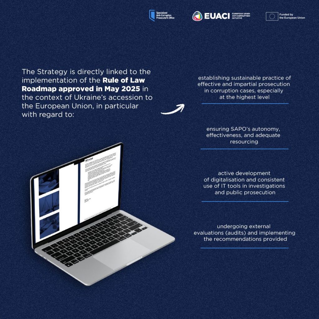 The Strategy of the Specialized Anti-Corruption Prosecutor’s Office in Ukraine (SAPO) sets out key priorities for institutional development and strengthening SAPO’s capacity to combat high-level corruption. The Strategy was developed with the support of the EU Anti-Corruption Initiative in Ukraine (EUACI) and is the result of a collective effort by the SAPO team together with national and international experts engaged by EUACI.