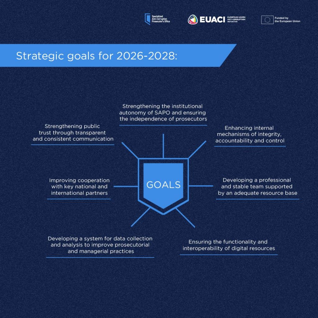 The Strategy defines seven strategic objectives, ranging from institutional autonomy and internal integrity mechanisms to team development, digitalisation, analytics, partnerships, and systematic communication with the public.