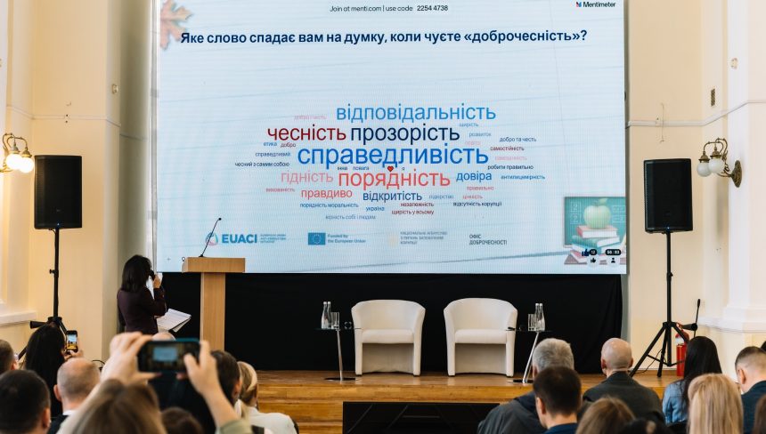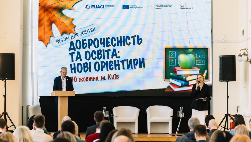 30 жовтня у київській школі №25 відбувся форум «Доброчесність та освіта: нові орієнтири», організований Національним агентством з питань запобігання корупції (НАЗК) у партнерстві з Антикорупційною ініціативою ЄС (EUACI). Обговорити роль освіти у формуванні культури доброчесності в Україні зібрались представники Міністерства освіти і науки України, освітніх установ, педагогічної спільноти, громадських організацій, студентських ініціатив та міжнародних партнерів.