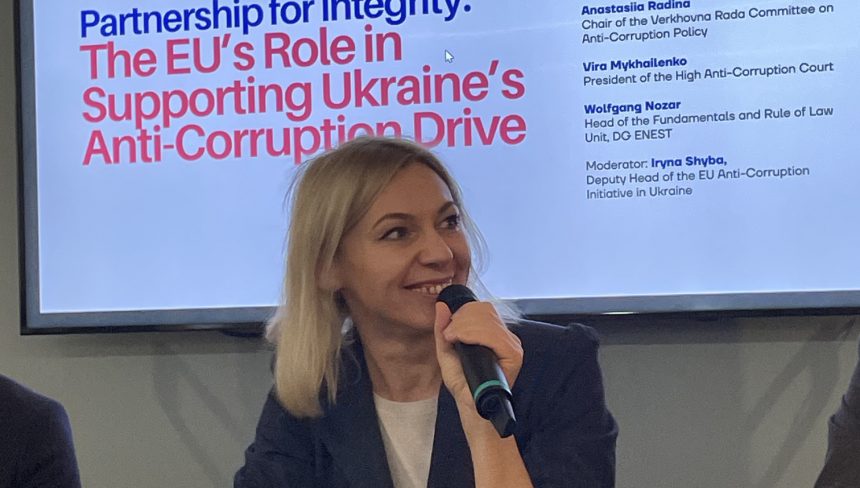 Участь у дискусіях взяли: Тарас Качка, Віцепрем’єр-міністр з питань європейської та євроатлантичної інтеграції України; Анастасія Радіна, Голова Комітету Верховної Ради з питань антикорупційної політики; Ярослав Железняк, народний депутат України; Віра Михайленко, голова Вищого антикорупційного суду України; Поліна Лисенко, заступниця директора НАБУ; Андрій Боровик, виконавчий директор Transparency International Ukraine; Вольфганг Нозар, керівник підрозділу з питань основоположних принципів і верховенства права, DG ENEST; та Алан Паг Крістенсен, керівник Антикорупційної ініціативи ЄС (EUACI).